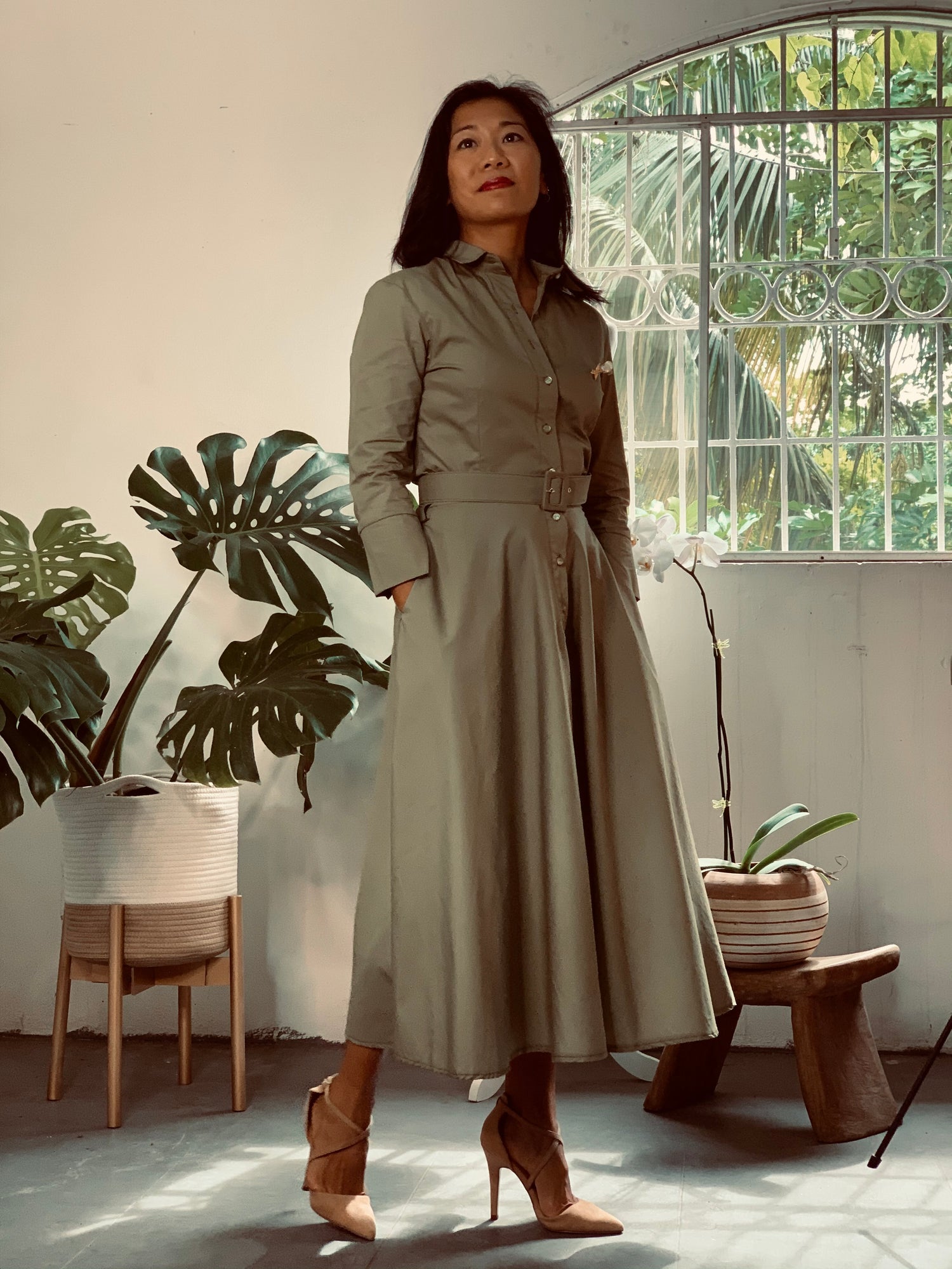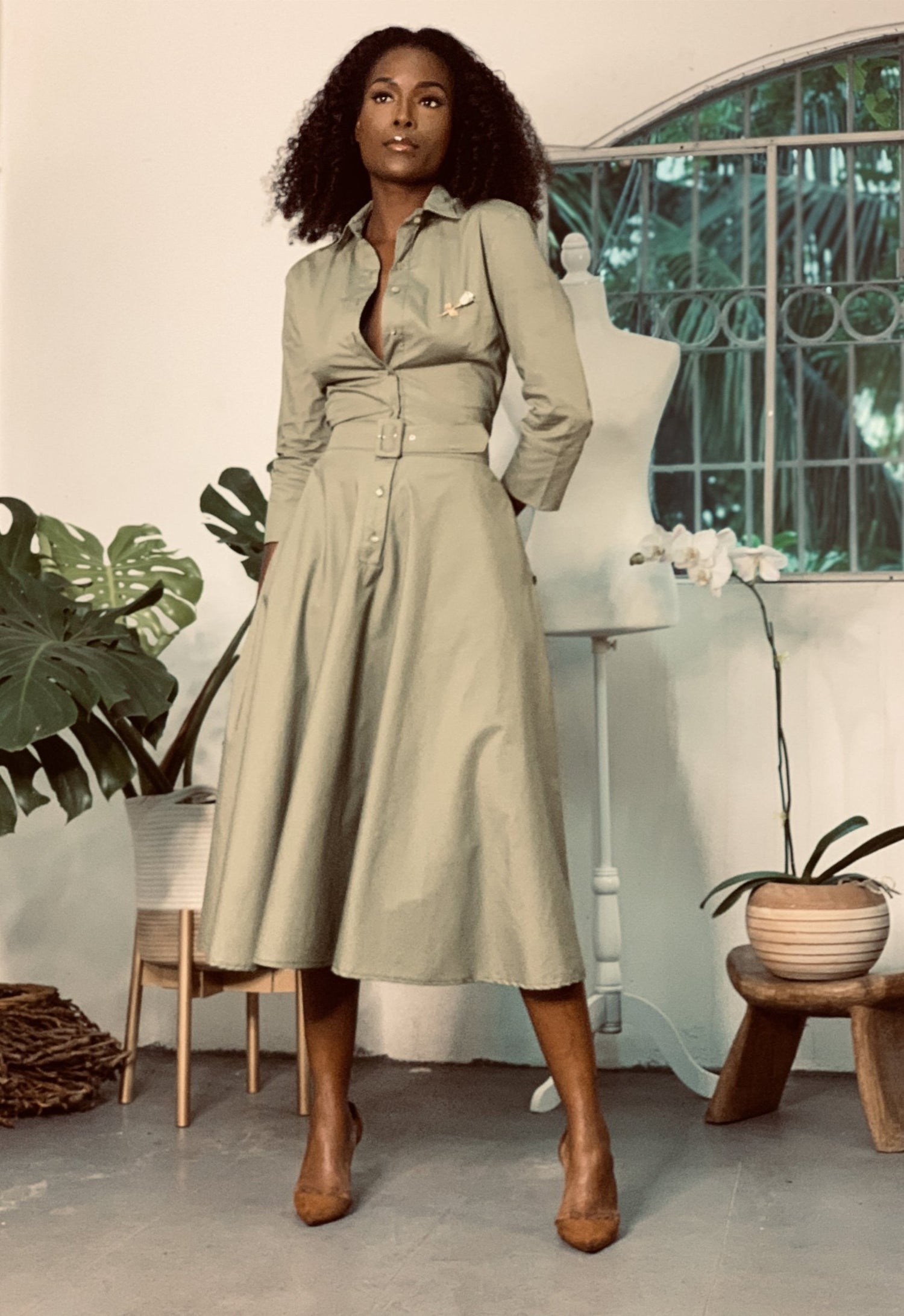 Button Up Twirl Dress Olive